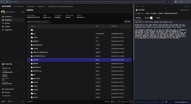 2026-01-16T22:22:25Z d61ae1c6 216 MiB 1s /Users/gilles/Wip/github.com/PlakarKorp/plakarIncluding its content: